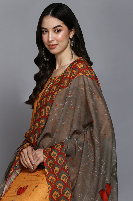 Multi Color Cotton Blend Floral Printed Straight Suit Set VKSKD2299