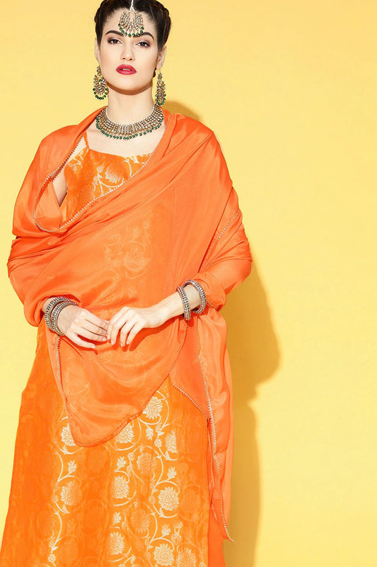 Orange Floral Cotton Kurta, Trouser Dupatta Set VKSKD1257