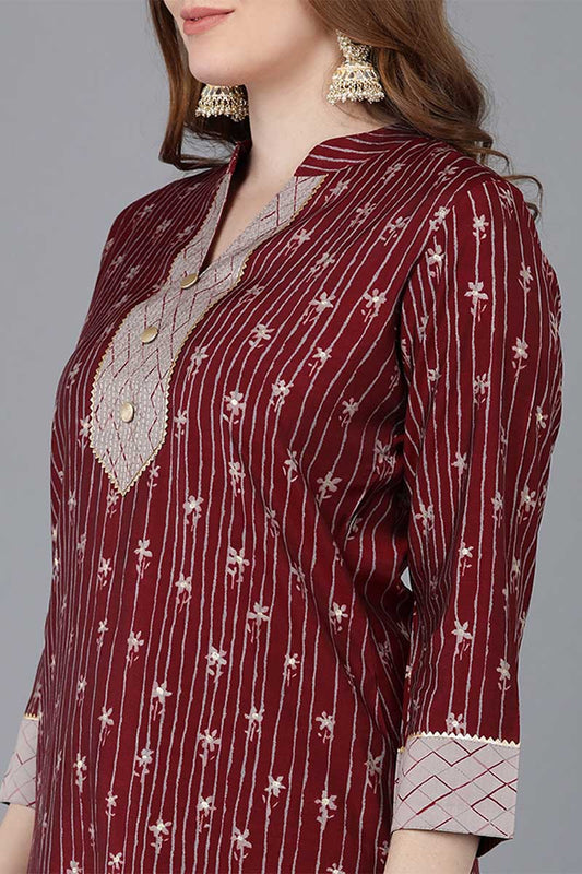 Maroon Rayon Blend Floral Printed Straight Trouser Suit Set VKSKD2266