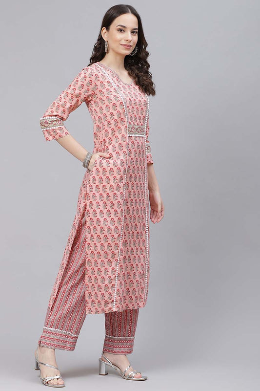 Pink Rayon Blend Floral Printed Straight Trouser Bottom Suit Set VKSKD2239