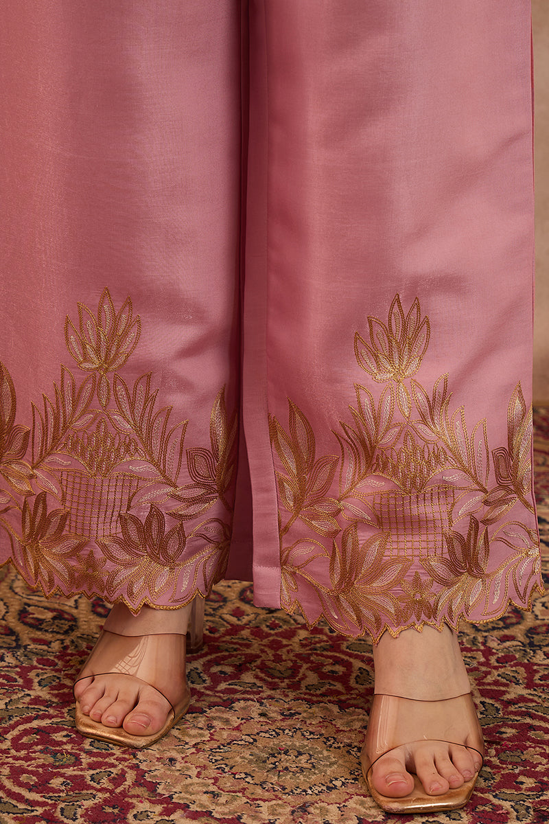 Pink Silk Blend Embroidered Scalloped Coord Sets VCORD1146