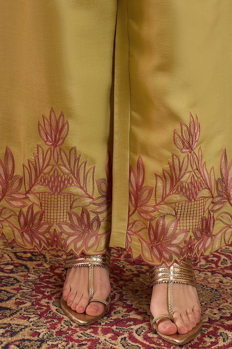 Yellow Silk Blend Embroidered Scalloped Coord Sets VCORD1145