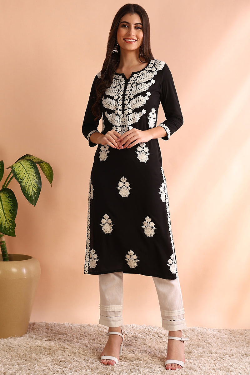 Black Viscose Rayon Solid Embroidered Straight Kurta VCK9773BLK