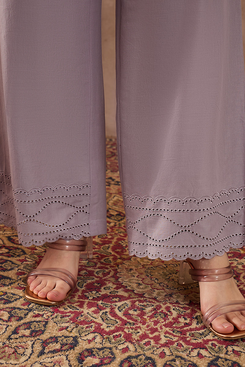 Lavender Pure Cotton Embroidered Straight Coord Sets VCORD1165