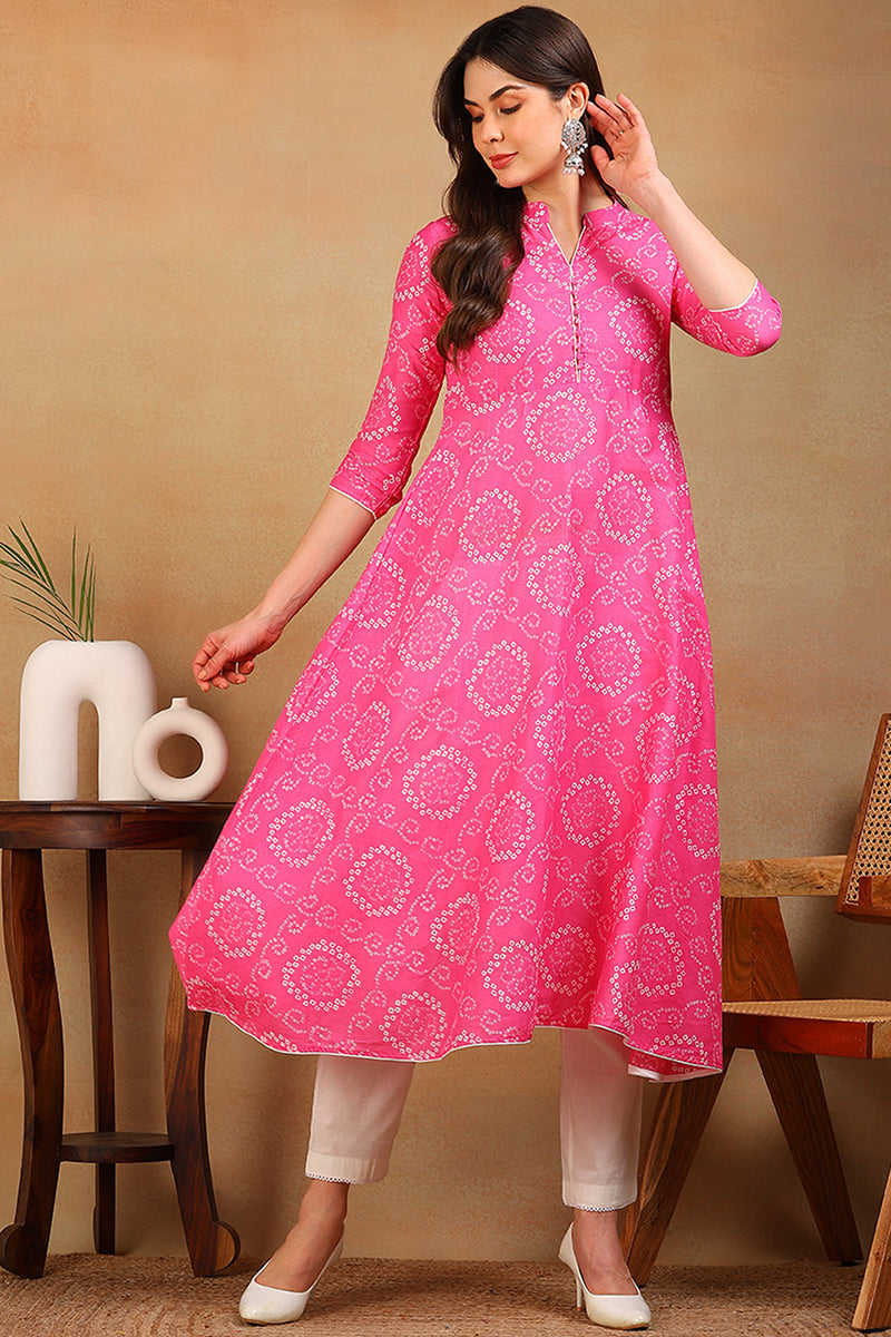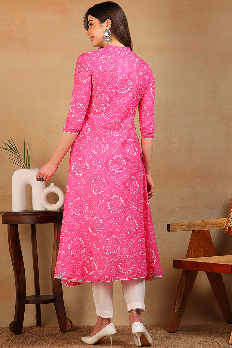 Pink Cotton Bandhani Flared Kurti VCK1177