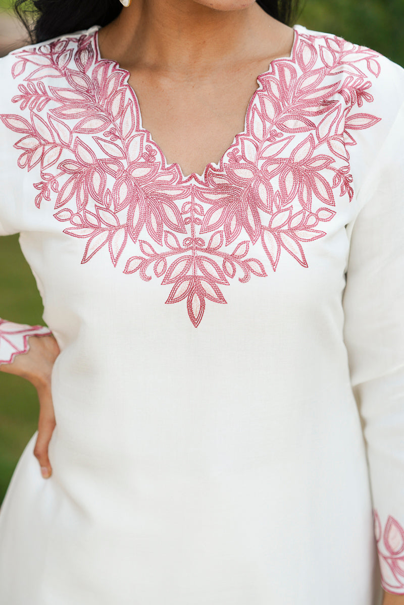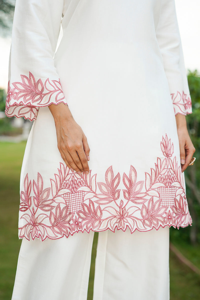 White Silk Blend Solid Embroidered Coord Sets VCORD1135