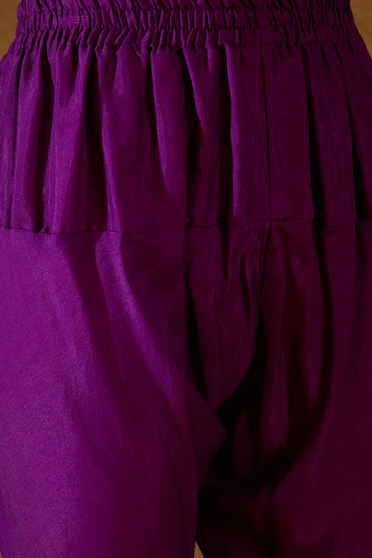 Purple Silk Blend Floral Embroidered Straight Kurta Trousers With Dupatta SKSKD3121